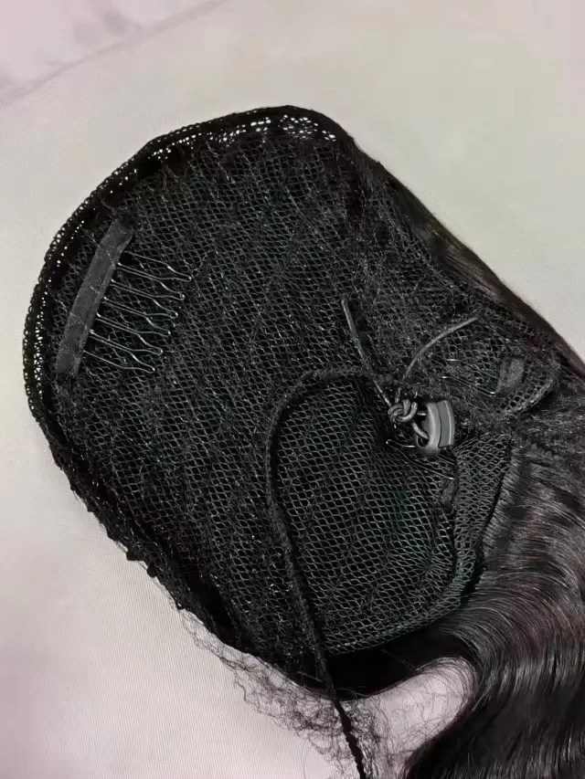 Natural Black Remy Human Hair Body Wave Drawstring Ponytail Extension – Chip-In Hair Wrap Ponytail